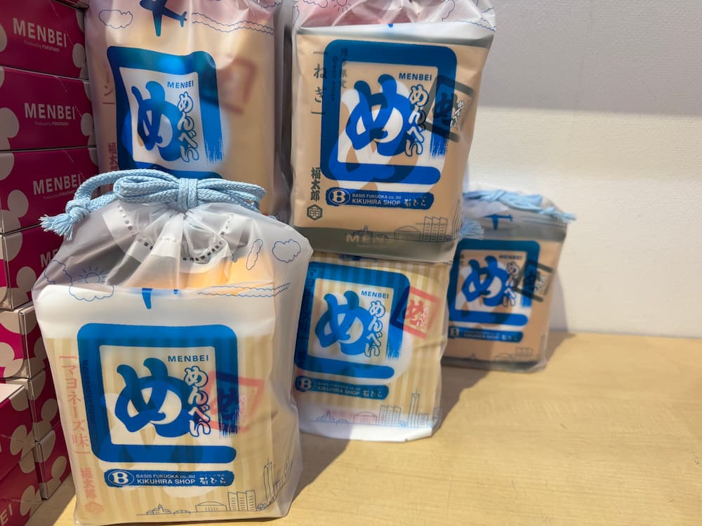 ・福岡土産の定番「めんべい」を、空港限定パッケージで購入できるのがポイント