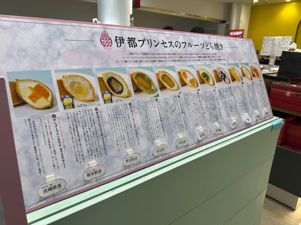 「伊都プリンセスのフルーツどら焼き」は、ふんわりしたどら焼き生地の中にフルーツやクリームを合わせた贅沢などら焼きです。いつもおなじみの店舗ではあまおうだけですが、こちらはバラエティ豊富でフルーツ好きにはたまらない、どれを選べばいいか悩んでしまうどら焼きが集結しています。見た目も華やかで、通常のどら焼きとは少し違ったスイーツ感覚で楽しめます。