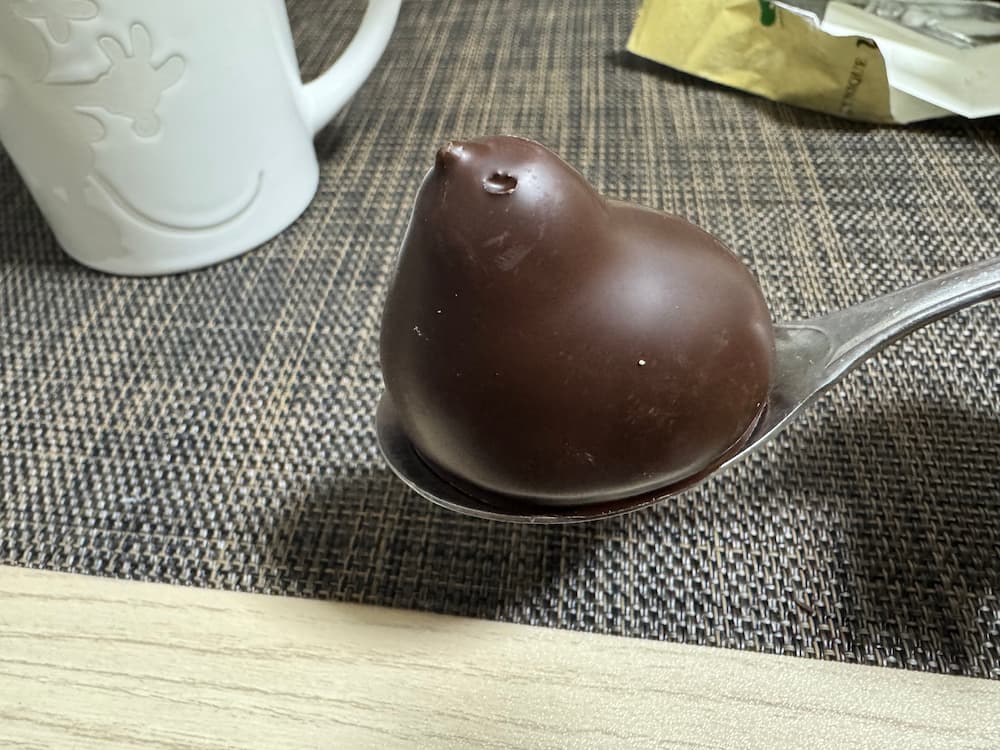 ゴールドのパッケージに入っており、高級感があるひよこの中でも別格的存在です。袋を開けるとビターチョコに包まれたひよ子が登場します。この商品は空港内のひよこ直営のお店でしか販売されていません。
