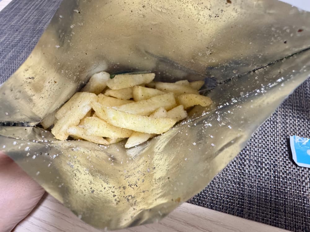 ポテト1本1本に厚みがあるので、ザクザクと食感も楽しめます。今までありそうでなかった、うどんだしのスナック菓子。スーパーに並んでいるフライ菓子とは違います。香川に行った際はまとめ買いしたいほど、すぐにでもまた食べたくなる一品でした。