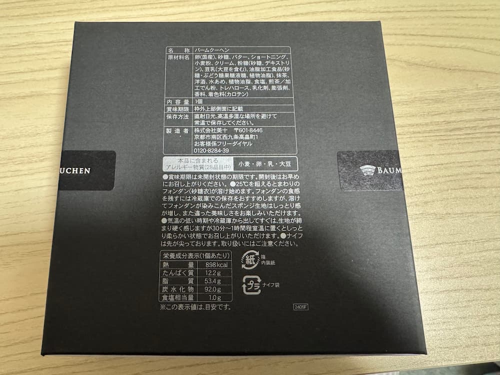 保存は常温でOKなので持ち運びもしやすく、お土産として買いやすい商品です。ただ、一つ注意しておきたい事があります!バームクーヘンの周囲に塗っているフォンダンと呼ばれる表面の糖衣は25℃を越えると溶けやすくなるため、出来るだけ涼しいところでの保管が推奨されています。