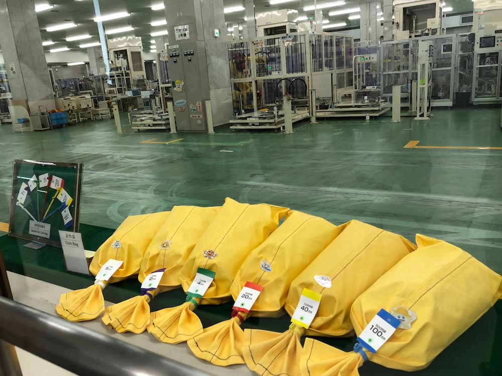 見学コースでは、実際に硬貨が作られる工程をガラス越しに見学できます。撮影もOKです。